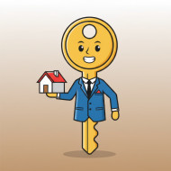 key mascot home ownership real estate concept property access housing symbol security welcome concept business character trust opening doors flat style character corporate design beige background professional branding prompt google gemini nano bananaImagine Buddy