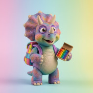 triceratops character friendly dinosaur childhood creativity school concept learning fun curious expression education mascot imagination art supplies playful learning clay style stop motion look pastel colors kids illustration creativity concept prompt google gemini nano bananaImagine Buddy
