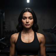 Cinematic portrait of personal trainer in dark modern gym google gemini prompt