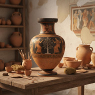 pottery greek classical ancient workshop hand painted clay traditional patterns ambient lighting shallow depth of field realistic texture cultural product high resolution fresco style ceramic art historic workshop artisan pottery heritage craft classical design decorative ceramics hellenic art antique pottery workshop scene prompt google gemini nano bananaImagine Buddy