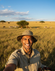 wildlife enthusiast maasai mara savannah travel selfie safari animals adventure outdoor exploration wildlife photography travel journey natural habitat daylight environmental depth vibrant colors candid african landscape nature travel grasslands tourism safari adventure prompt google gemini nano bananaImagine Buddy