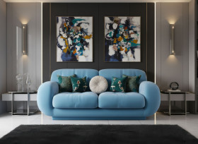 velvet sofa artistic loft interior modern living space bold decor patterned cushions dark accent wall moody lighting contemporary furniture dramatic interior e commerce display creative home design stylish loft interior styling modern art decor luxury lifestyle rich upholstery elegant living room design inspiration prompt google gemini nano bananaImagine Buddy