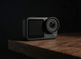 action camera cinematic product studio lighting premium equipment compact camera technology device commercial photography dramatic mood low key lighting side angle wood texture dark backdrop storytelling concept professional gear high detail moody aesthetic luxury tone prompt google gemini nano bananaImagine Buddy