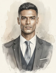 hr team member portrait ink wash professional diffused daylight neutral tones stone and beige corporate refined artistic texture approachable leadership business headshot professional branding modern style soft texture elegant muted palette polished prompt google gemini nano bananaImagine Buddy