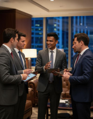 corporate networking business professionals executive meeting male professionals leadership teamwork networking event professional lifestyle business socializing candid business financial services luxury interior corporate culture social interaction career growth upscale lounge warm lighting business discussion professional environment prompt google gemini nano bananImagine Buddy