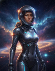 Sci fi portrait of woman in space suit with cosmic vista google gemini prompt
