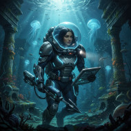 underwater explorer deep sea suit sunken city luminous gear ocean ruins cinematic lighting dramatic contrast adventure exploration character design scuba suit underwater world realistic style hyper detailed marine environment ancient ruins discovery concept atmospheric lighting sci fi exploration prompt google gemini nano bananaImagine Buddy