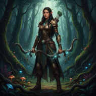elf ranger fantasy archer enchanted bow forest glade ancient woodland cinematic lighting dramatic contrast character design nature magic serene warrior fantasy character semi realistic high contrast lighting mystical forest archery skill woodland guardian magical charm peaceful mood epic fantasy prompt google gemini nano bananaImagine Buddy