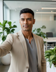 business woman open office professional selfie corporate lifestyle modern workplace leadership confidence professional portrait executive woman office interior beige blazer grey blouse glass partitions greenery office work environment professional attire natural light business career success concept prompt google gemini nano bananaImagine Buddy