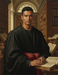 philosopher scholarly robes grand library high renaissance oil painting museum quality velvet sash old tomes natural window light fine craquelure intellectual contemplation study classic scholar renaissance portrait historical figure library interior soft light book collection learned person prompt google gemini nano bananaImagine Buddy