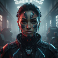 techwear woman futuristic portrait cyberpunk fashion carbon fiber face led skin nano technology abandoned factory sci fi character female cyborg industrial future advanced materials urban decay red white lighting volumetric fog dystopian style cyber lifestyle wearable tech prompt google gemini nano bananaImagine Buddy
