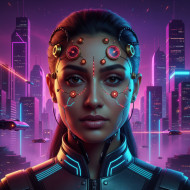 retro futurism woman futuristic portrait cyberpunk woman analog technology neural interface data scars synthwave skyline sci fi character female cyborg vintage future cyber aesthetic dusk cityscape technology nostalgia amber cyan lighting volumetric fog digital identity speculative future cyber culture prompt google gemini nano bananaImagine Buddy