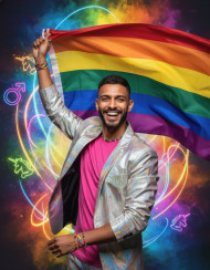 confident gay man celebrating pride month waving rainbow flag colorful fashion bold lighting instagram vertical modern lifestyle high contrast neon rainbow festive mood expressive style ultra sharp dynamic composition social media ready lgbtq celebration vibrant scene joyful atmosphere pride parade prompt google gemini nano bananaImagine Buddy