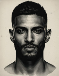 man brooding man dark watercolor dramatic ink hybrid portrait noir style paper high contrast expressive portrait deep black tones smoky gray midnight blue accents professional gallery emotional mood detailed illustration atmospheric artistic style fine art intense gaze realistic rendering shadowed portrait prompt google gemini nano bananaImagine Buddy