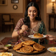 Gujarati woman serving patra at home google gemini prompt