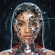 Mixed media sci fi portrait with floating digital skin fusion google gemini prompt futuristic portrait