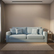 sofa compact apartment small living room micro living space modern furniture city interior microfiber upholstery space saving design product display urban home beige wall evening light minimal decor apartment lifestyle contemporary interior residential furniture studio apartment home styling catalog showcase efficient layout prompt google gemini nano bananaImagine Buddy
