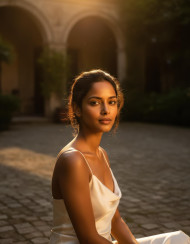 luxury portrait golden hour lighting private courtyard intimate atmosphere textured shadows elegant setting high end portrait backlighting refined style sunset glow sophisticated mood outdoor elegance cinematic lighting fashion portrait warm sunlight premium aesthetic artistic tone serene environment upscale lifestyle classic beauty prompt google gemini nano bananaImagine Buddy
