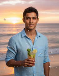 man birthday celebration beach party tropical setting seaside celebration ocean sunset casual outfit summer lifestyle travel portrait festive moment coastal lifestyle vacation mood warm light leisure outdoor celebration relaxed style horizon view island vibe celebration concept lifestyle portrait prompt google gemini nano bananaImagine Buddy