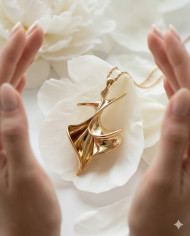 gold pendant peony petals luxury jewelry floral background elegant accessory soft texture feminine style delicate design minimal aesthetic premium product pastel tones romantic mood natural beauty soft lighting floral detail refined elegance gentle composition spring theme clean background luxury lifestyle prompt google gemini nano bananaImagine Buddy