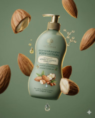 skincare product almond floating product cosmetic bottle green background product showcase advertising minimal design 3d render hero shot natural ingredient beauty product clean aesthetic modern branding studio lighting high end wellness product organic skincare creative concept commercial ad prompt google gemini nano bananaImagine Buddy