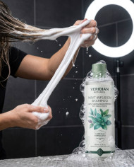 shampoo texture foam stretch macro detail hair lather product performance bubbles action shot clean hair beauty care hair wash elasticity creamy texture water droplets modern bathroom glossy surface freshness hygiene close up skincare concept prompt google gemini nano bananaImagine Buddy