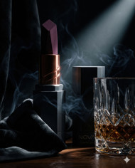 Film noir lipstick in dark velvet dramatic luxury scene google gemini prompt