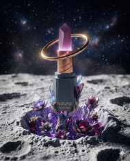 Surreal lipstick growing from moon crater cosmic beauty ad google gemini prompt