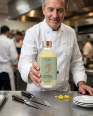 Professional chef approving lemon beverage in modern kitchen google gemini prompt