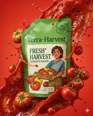 ketchup pouch splash wave black peppercorns product packaging food advertising liquid motion high speed green pouch macro photography dynamic splash tomato sauce flying spices studio shot bold contrast clean background fmcg energy motion food styling suspended object sharp detail minimal backdrop dramatic effect prompt google gemini nano bananaImagine Buddy