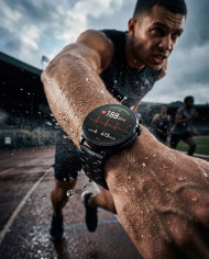 Fitness smartwatch during intense workout with sweat action scene google gemini prompt