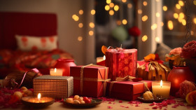 Diwali joy with candles and gift giving, diwali festival stock image, diwali festival ai prompt