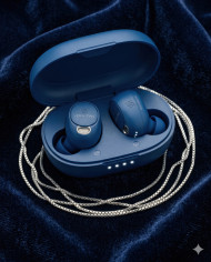 wireless earbuds charging case velvet fabric luxury gift premium design jewelry style soft texture elegant composition audio device modern tech dark background refined aesthetic top view sophisticated gift idea celebration minimal luxury soft lighting high contrast decorative chain prompt google gemini nano bananaImagine Buddy