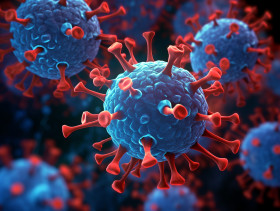 Photo 3d render of an abstract medical background with low poly virus cells on particle design, health and medical stock image