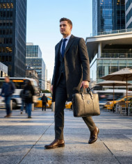 Businessman carrying leather office bag urban city motion google gemini prompt