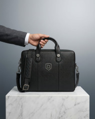 leather bag office bag luxury accessory businessman corporate style marble plinth studio lighting executive premium design copy space minimalism prompt google gemini nano bananaImagine Buddy