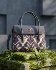 satchel handbag moss stone nature fusion urban backdrop greenery fashion accessory outdoor concept modern lifestyle contrast organic natural light prompt google gemini nano bananaImagine Buddy