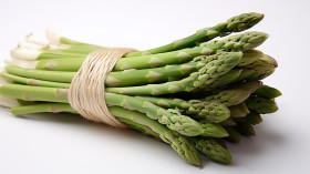 Freshly cut asparagus wrapped with white string, asparagus image