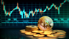A photo of a bitcoin price chart, blue technology, digital, finance graph