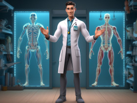 Doctor animation, health and medical stock image
