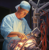 A surgeon using a robotic, medical images stock