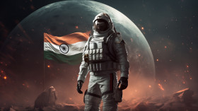 Astronaut standing near indian flag on moon, chandrayaan with indian flag