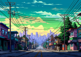 Pixelated city street wallpaper, pixel style art