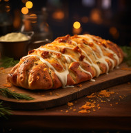 calzone food wood brush cheese garlic snack lunch sauce baked sausage cheddar platter dipping sauce cutting board marinara garlic butter sliced pizza patty kid friendly no people nobodyImagine Buddy