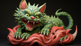 carving style art background vintage landscape monument palace landmark illustration imaginebuddy watermelon cat danger danger cat angry jaws openImagine Buddy