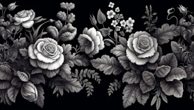 Ornate black background with flowers, embossing styles