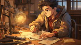 education people school color communication strategy day ethnicity cooperation introducing professional occupation imaginebuddy sitting table chair boy student lamp holding animation cartoon pen working studyImagine Buddy