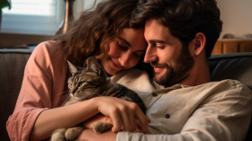 couple cat woman people man house love home space girl white interior room happy smile lifestyle bed young beautiful adult happiness romance romantic relationship wife husband morning intimate hug weekend play cozy caucasian casual female relaxing cheerful warm male cuddling two indoors close playful togetherImagine Buddy