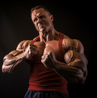 muscle men bicep arm caucasian fist build person front people light beauty portrait lifestyle training healthy adult body care athlete human muscular power strength waist chest confidence weight wellbeing horizontal macho conscious ethnicity flexing shirtless shot only attractive standing 30s maleImagine Buddy