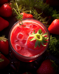 A photo of a strawberry juice, beverage advertisement photography inspiration
